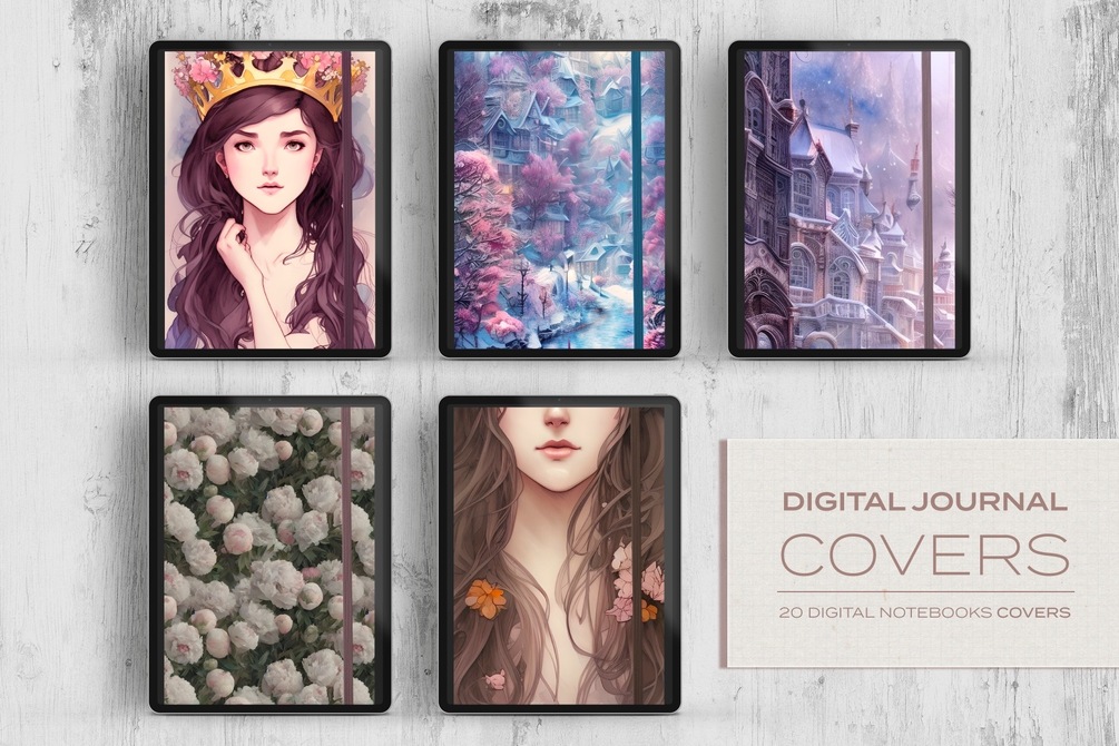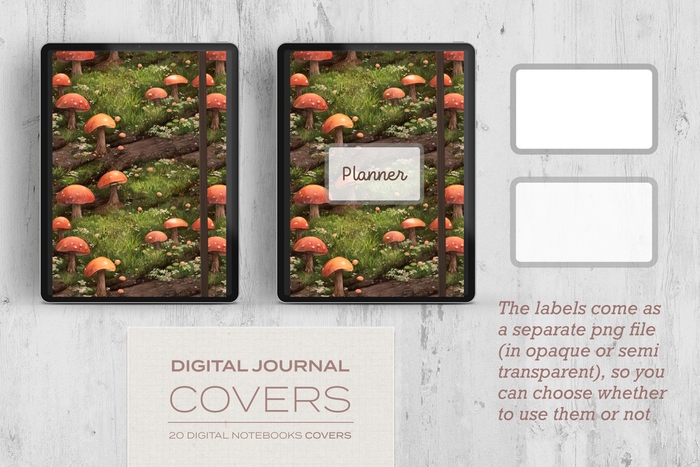 These covers are made to make your digital bookshelves look good. Set of 20 covers with beautiful illustrations of different themes, like women, flowers, mushrooms, forests and magical environments. You can easily import them into your note taking app that supports .jpg files.
